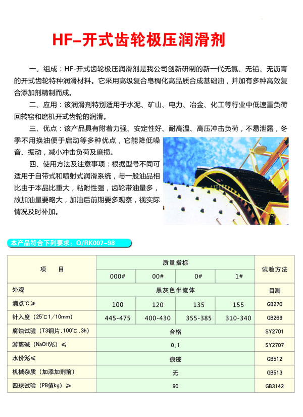 HF-開式齒輪極壓潤滑劑 簡介:... 咨詢熱線:13603799236 留言給我們 產(chǎn)品詳細(xì) 溫馨提示:舍得重金求產(chǎn)品,不圖便宜買假貨 請認(rèn)準(zhǔn)洛陽市潤康潤滑油有限公司,市場放心的產(chǎn)品。 洛陽市潤康潤滑油有限公司 上一篇:高溫輪帶高效潤滑劑 下一篇:HF-高溫開式齒輪極壓潤滑劑(回轉(zhuǎn)窯大齒輪專用)